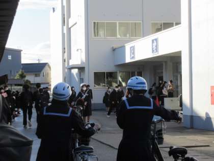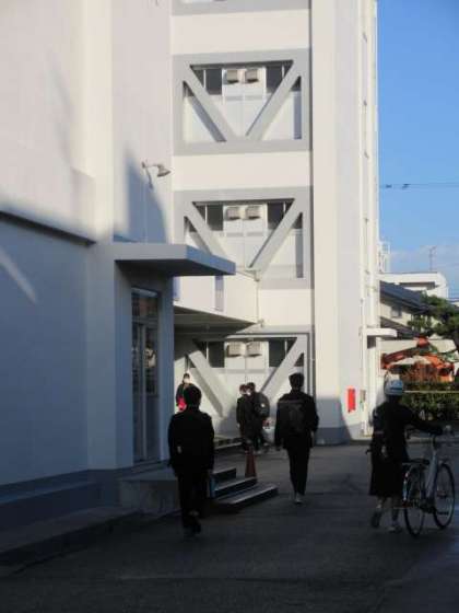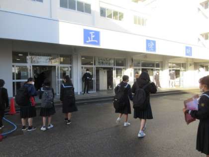 昨日からの雨で地面はぬれていましたが、空は登校する生徒を明るく照らしていました。