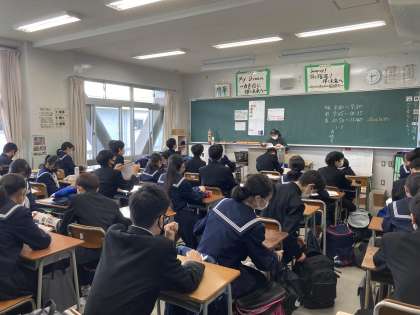 研修生の木下です。本日は、3年生の学期末テスト実施前の最後の授業に参加しました。