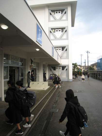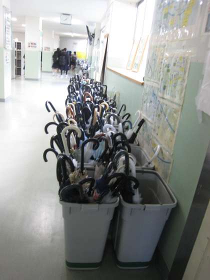 雨の日は、生徒玄関の傘バケツにたくさんの傘が入ります。