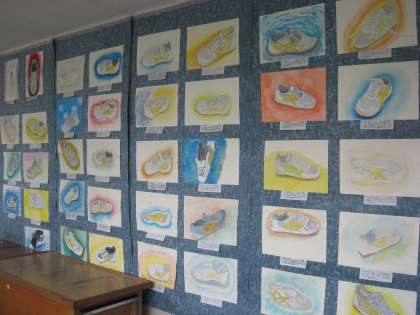 早く完成したクラスから美術の作品を展示しています。