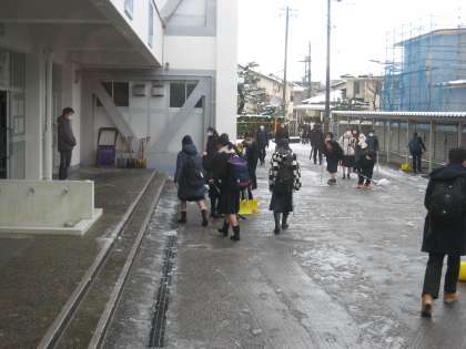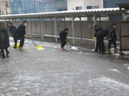 今日も当番の生徒が朝早くから除雪をしてくれてたおかげで、生徒たちは雪のない道を通ることができました。