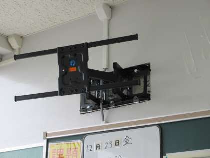 今回の工事では、3年生9クラスの教室の黒板左上に、写真のようにアームで固定されます。