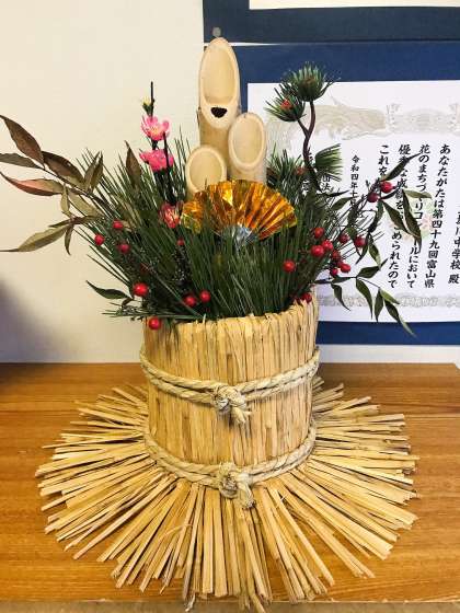 12月28日(水) 玄関に鏡餅、門松、しめ飾りをかけ、新年を迎える準備を行いました。 その2