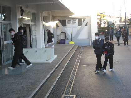 冷え込みの厳しい朝になり、少し背中を丸めて寒そうに登校する生徒たちの姿が見られました。