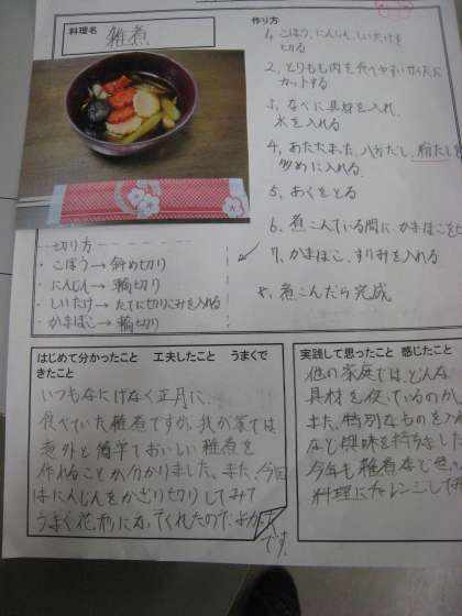 下:家庭科「我が家の食文化を伝えよう」レポート