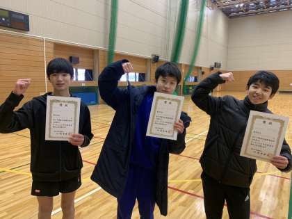 本日行われた富山市卓球選手権大会で2年松浦くん1位、1年西野くん2位、2年土田くんが3位でした。来月の富山市春季団体戦に向けてさらに頑張ります。