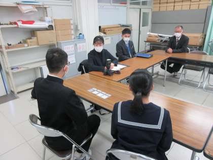 2月8日(水)放課後に、生徒会執行部への北日本新聞の取材がありました。