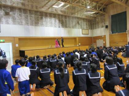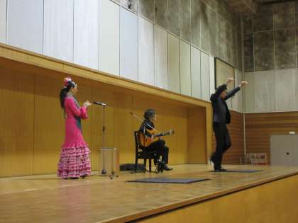 2月14日(火)、昼休みに体育館で、プロのフラメンコダンサーとプロのギタリストによる第二弾のステージを行いました。