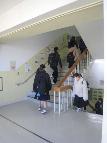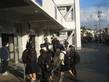 青空の下、元気に登校する生徒たちの姿が見られました。