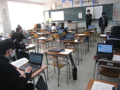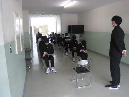 1クラスを3グループに分けて行うため、待ち時間の生徒は廊下と多目的室で自習をして過ごしました。