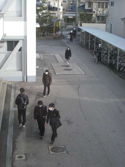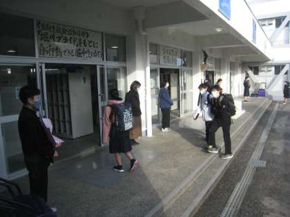 さわやかな青空の下、一週間の疲れを見せず、元気に登校する生徒の姿が見られました。