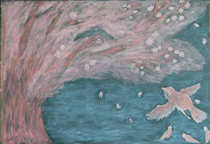 ・1年8組「羽ばたく鳥と、吹雪く桜」【岩城、平井、小柴、村上