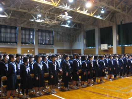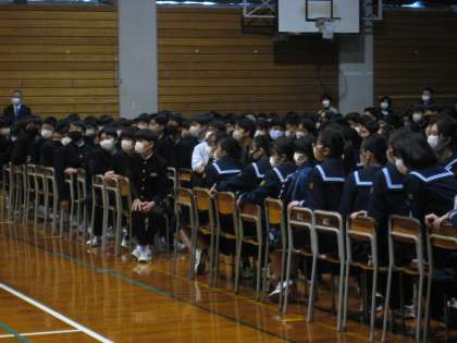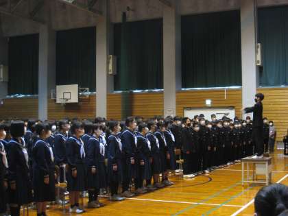 楽しい映像の後、1・2年生から「あなたに会えて…」の合唱を贈りました。