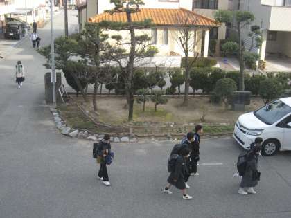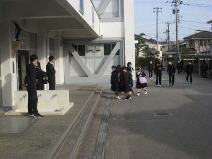 3年生が卒業し、3年生側の玄関は少し寂しげな雰囲気でしたが、1・2年生の元気な表情が見られました。