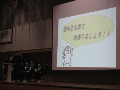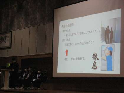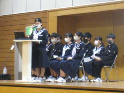 後期を締めくくる生徒集会では、専門委員長や執行部からの活動報告がありました。