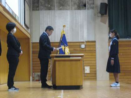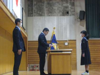 最初に各学年の代表者に修了証が授与されました。
