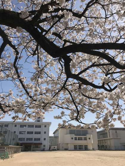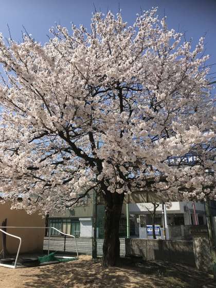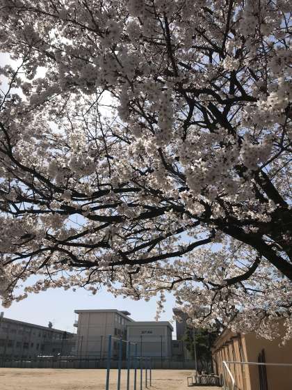 本校敷地内に唯一の桜は、写真のように満開を迎えました。