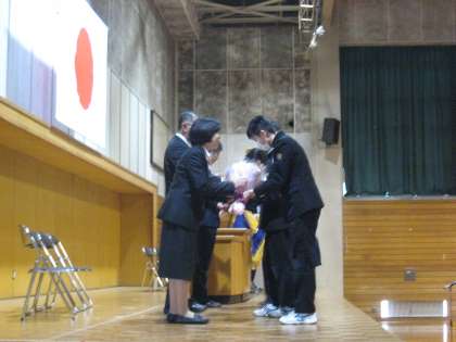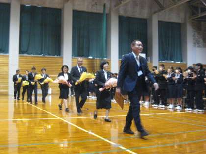 離任式では、異動された先生方からあたたかいメッセージをいただき、生徒代表が感謝の言葉を述べました。