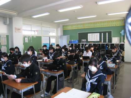 授業開始3分前には着席し、静かに心を落ち着けてチャイムを待っています。さすが3年生!