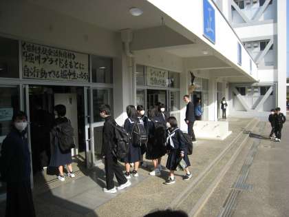 今日は午後から授業参観、TH会総会、学年懇談会、部活動懇談会があります。気を付けてお越しください。