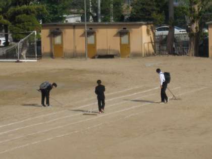 早朝から、丁寧にグラウンド整備をする生徒の姿が見られました。