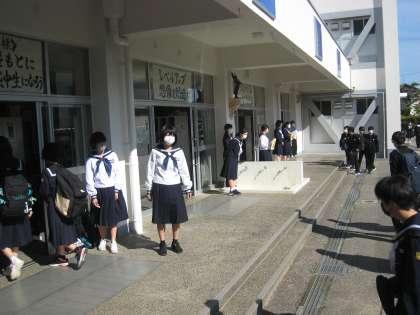 生徒玄関ではさわやかに挨拶を交わす姿が見られました。