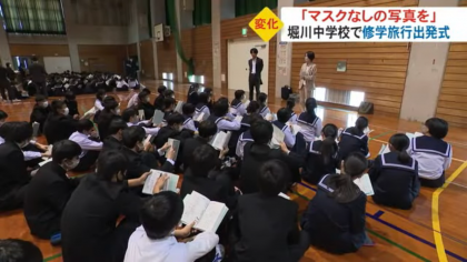 5月12日(金)、3学年の修学旅行出発式が行われ、富山テレビ「ライブBBT」の取材がありました。