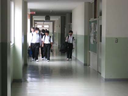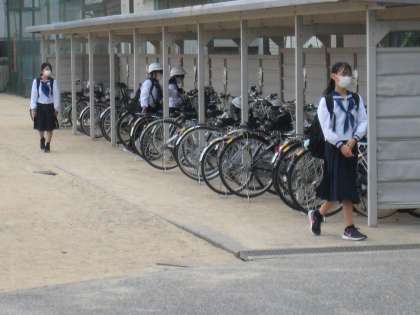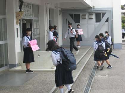 中間評価が終わり、生徒玄関では「足元を固めよう運動」の元気な呼びかけの声が聞こえてきました。