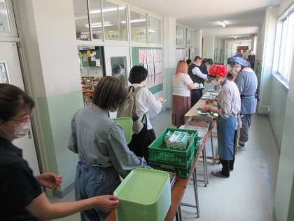 5月31日(水)12:00から、2年7組、8組、9組の教室で、TH会 給食試食会が行われました。