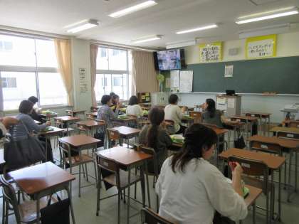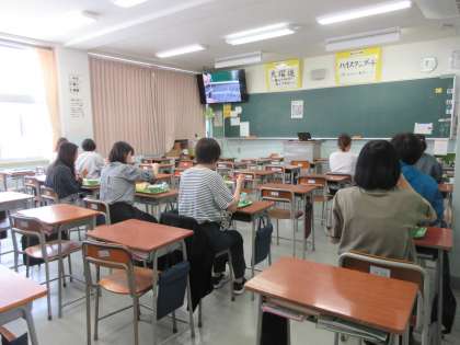試食会場では給食センターの動画(南給食センターが製作)を見ながら、給食がどのように調理され学校に届くのかを知りました。