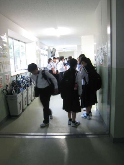 雨が降ったので、「足元を固めよう運動」の呼びかけを廊下で行っていました。