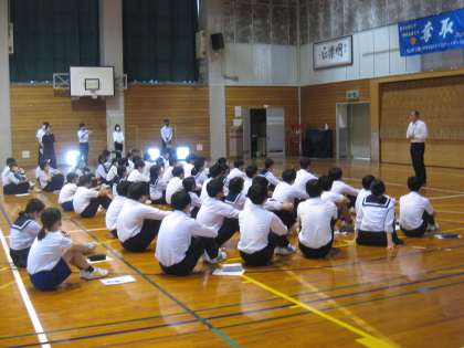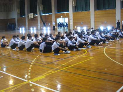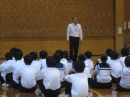 昼休みに、明日から始まる小中連携あいさつ運動の出発式を行いました。激励の言葉に「はい!」と元気よく応える頼もしい生徒たちでした。