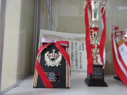 富山県小中学校PTA広報紙コンクール 最優秀賞トロフィー、賞状の展示について