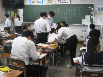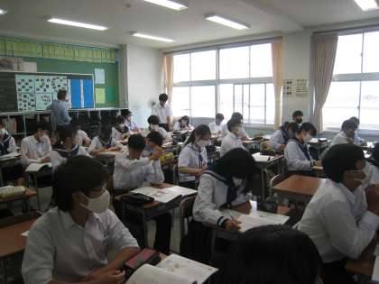 今日は3学年で実施しました。少しだけ緊張した様子で授業に臨む生徒たちの姿が見られました。