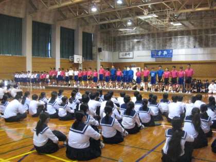 午後から壮行会を行いました。選手たちは堂々と入場し、それぞれの抱負を元気に述べました。