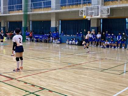 1セット目25-0、2セット目25-2で附属に勝ちました。次は呉羽-八尾の勝者と試合になります。