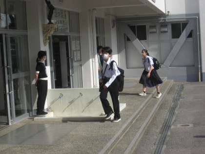 汗ばむような日差しの朝でしたが、生徒たちはさわやかな挨拶をしながら登校していました。