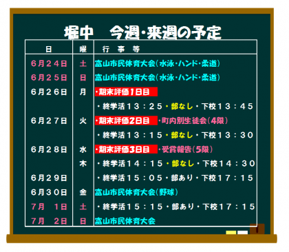 6月25日(日) 今週の予定