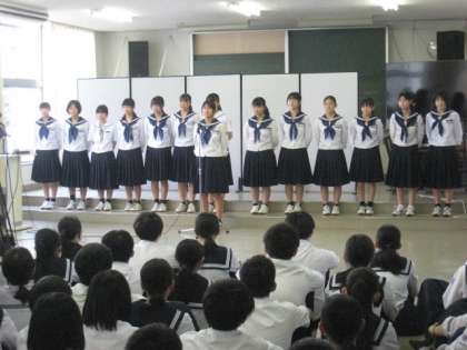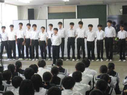 6限に、県中学校総合選手権大会選手壮行会を行いました。