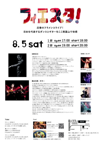 8月5日(土)、南富山駅前の特設ステージで、フラメンコライブ「フィエスタ!」が行われます。