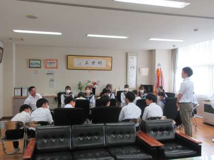 7月11日(火)、昼休みに校長室で、陸上競技部が先週行われた県選の報告を大久保校長先生に行いました。