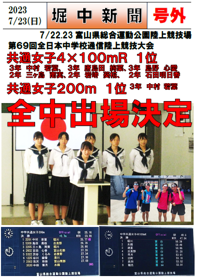 7月23日(日) 号外「陸上競技部 全中出場決定!」