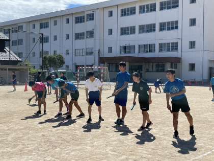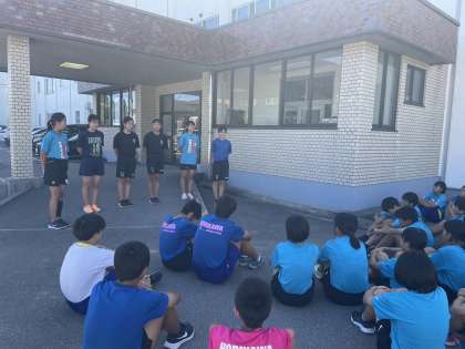 全中前にリレー練習をみんで行いました。最後にリレーに出場する選手たちに壮行会を開き、激励しました。