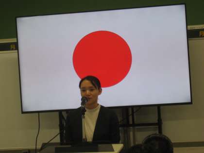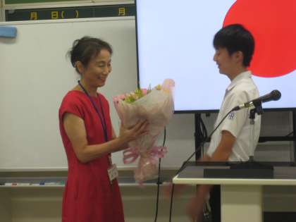 笑顔の花束贈呈後、復帰する草教諭からの挨拶がありました。