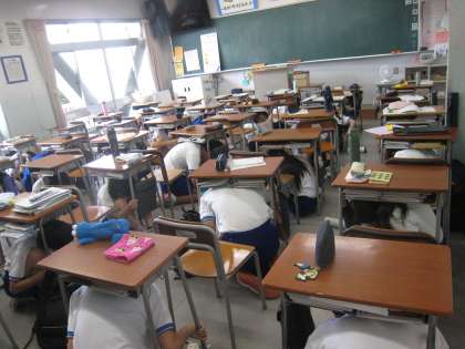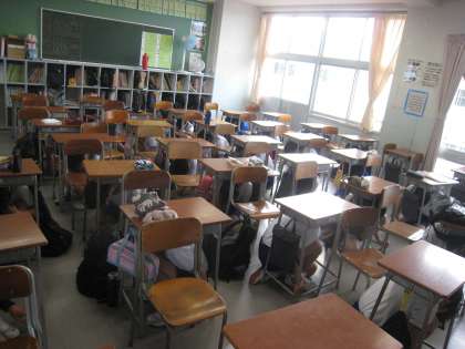 教室でも、生徒たちは放送の指示に従い、自分の身を守る姿勢をとりました。
