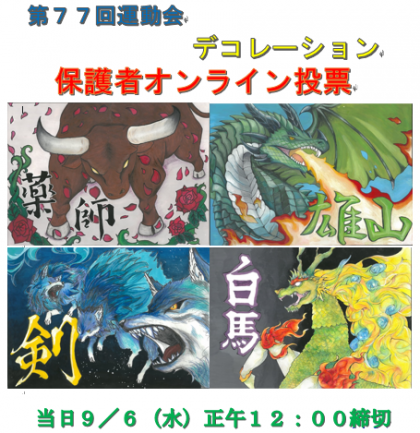 9月4日(月) 第77回運動会デコレーション投票のお知らせ【保護者オンライン投票】