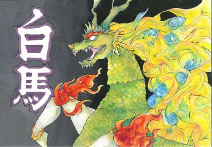 白馬団のデコレーションの見所は、生きている線のように見せるため線画の強弱や太さに力を入れたところです。今年は黄色がはっきり目立つ麒麟を描きました。瞳や顔には威厳をもたせながらも、空を美しく悠々と駈けている姿をグラデーションやくっきりとした影で表現しました。自らの足で高みへと駆け抜けていってほしいという想いで描きました。