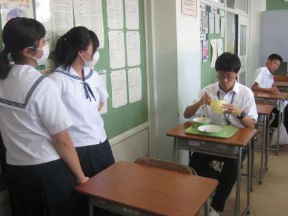 今日で教育体験活動生の実習は終了です。給食の時間は楽しい雰囲気で、部活動の見学は真剣な表情で、最後までがんばっていました。