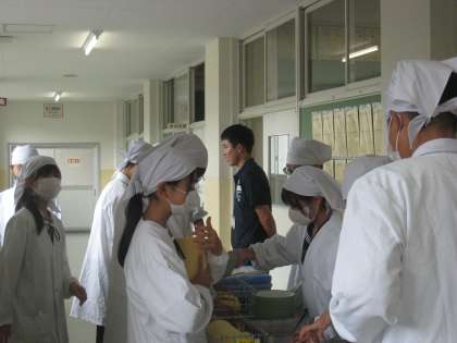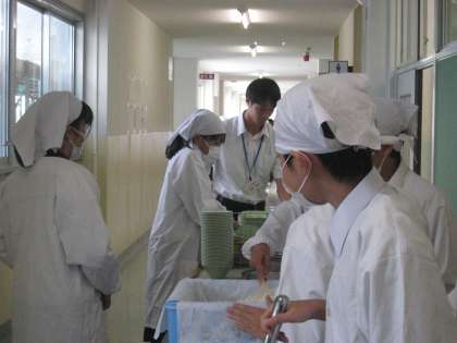 明日は給食がないので、教育実習最後の給食指導です。当番の活動や教室内を見守っています。