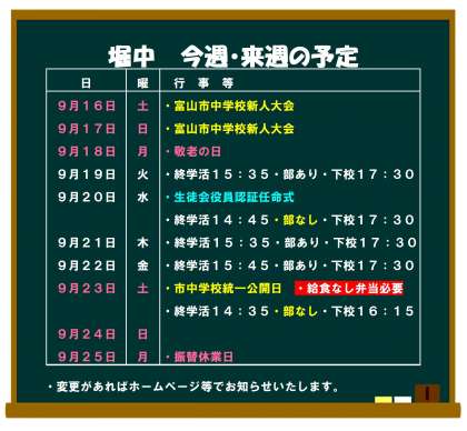 9月18日(月・祝) 今週・来週の予定